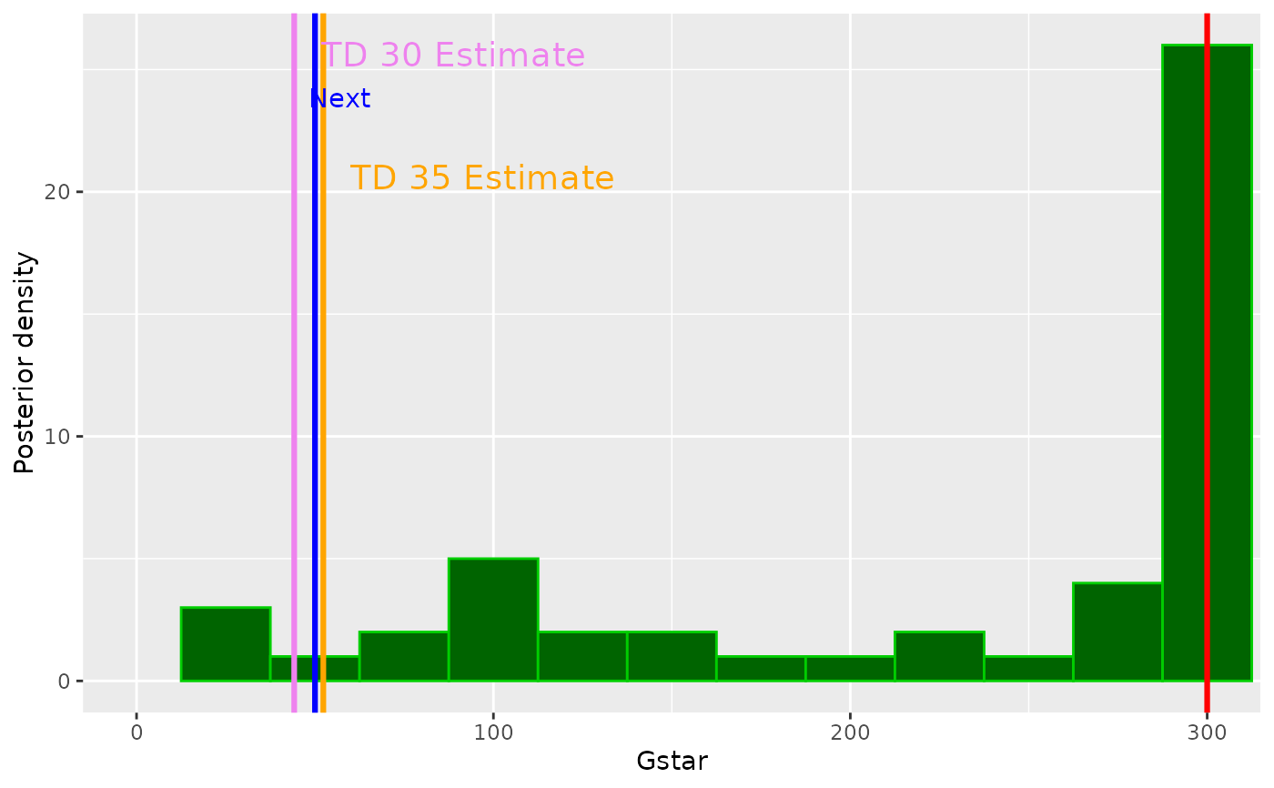 # Use 50% posterior quantile of the Gstar (the dose which gives the maxim gain value)