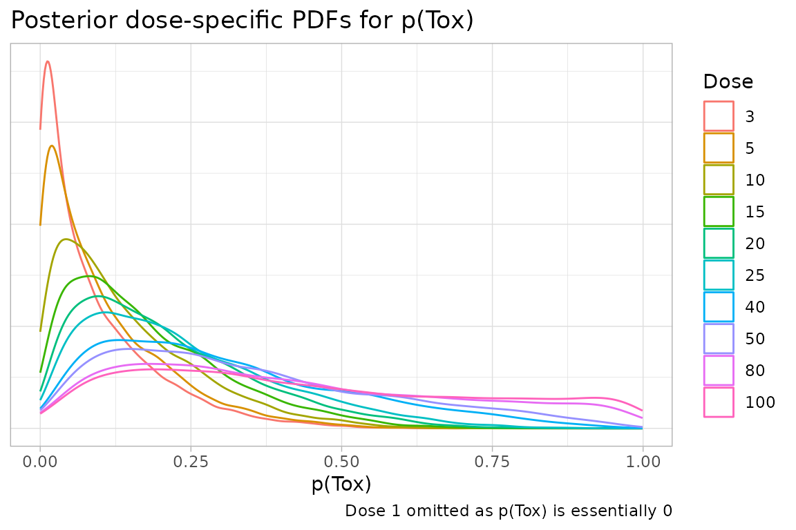title = "Posterior dose-specific PDFs for p(Tox)",