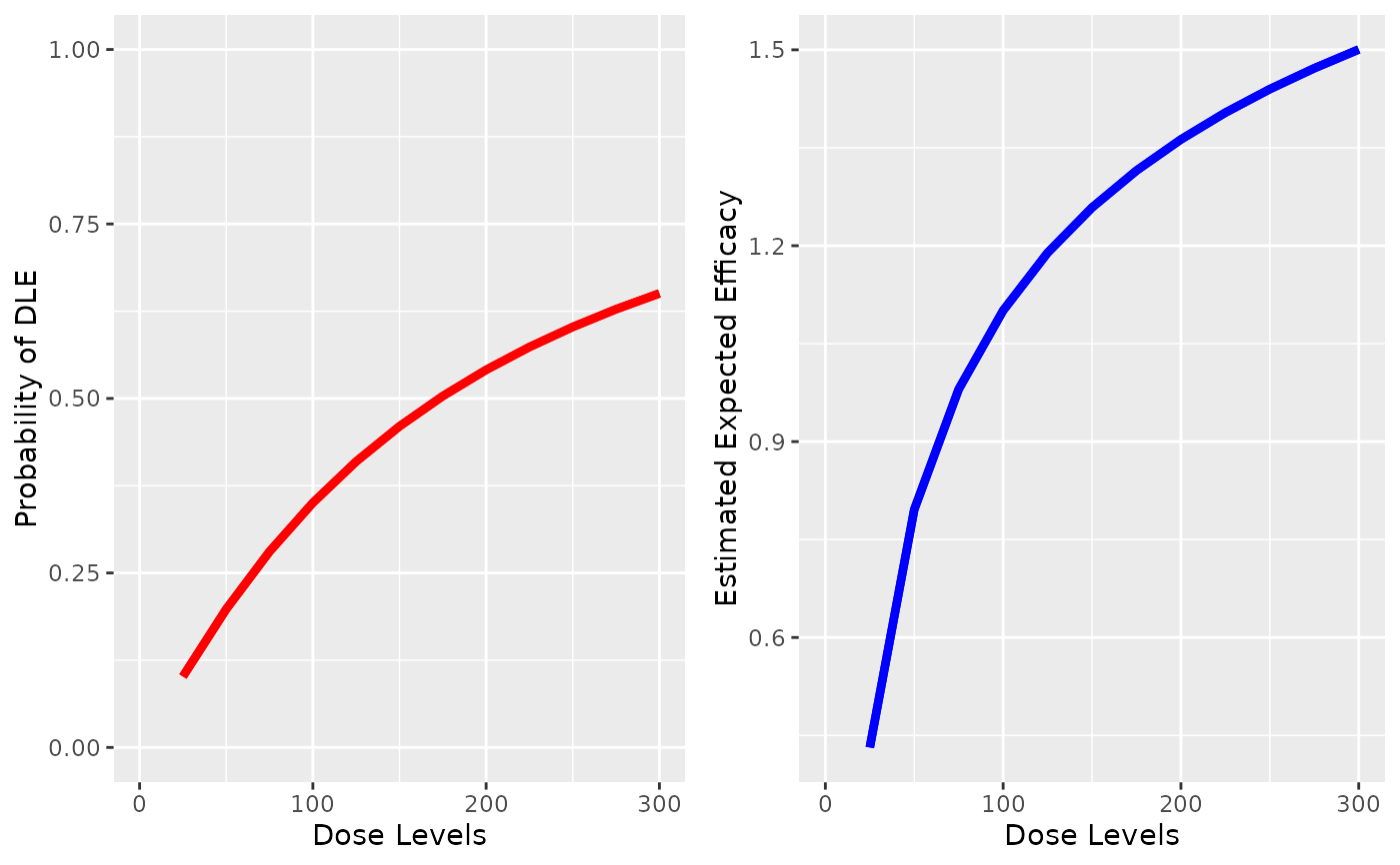 ##plot the dose-DLE and dose-efficacy curves with two plot side by side.