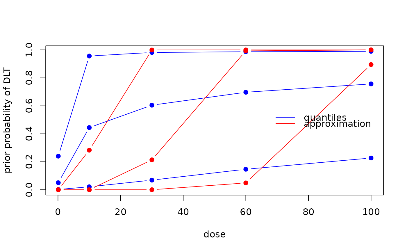 Quantiles2LogisticNormal(), e.g.refDoseandlogNormal=TRUEto obtain a minimal informative log normal prior.