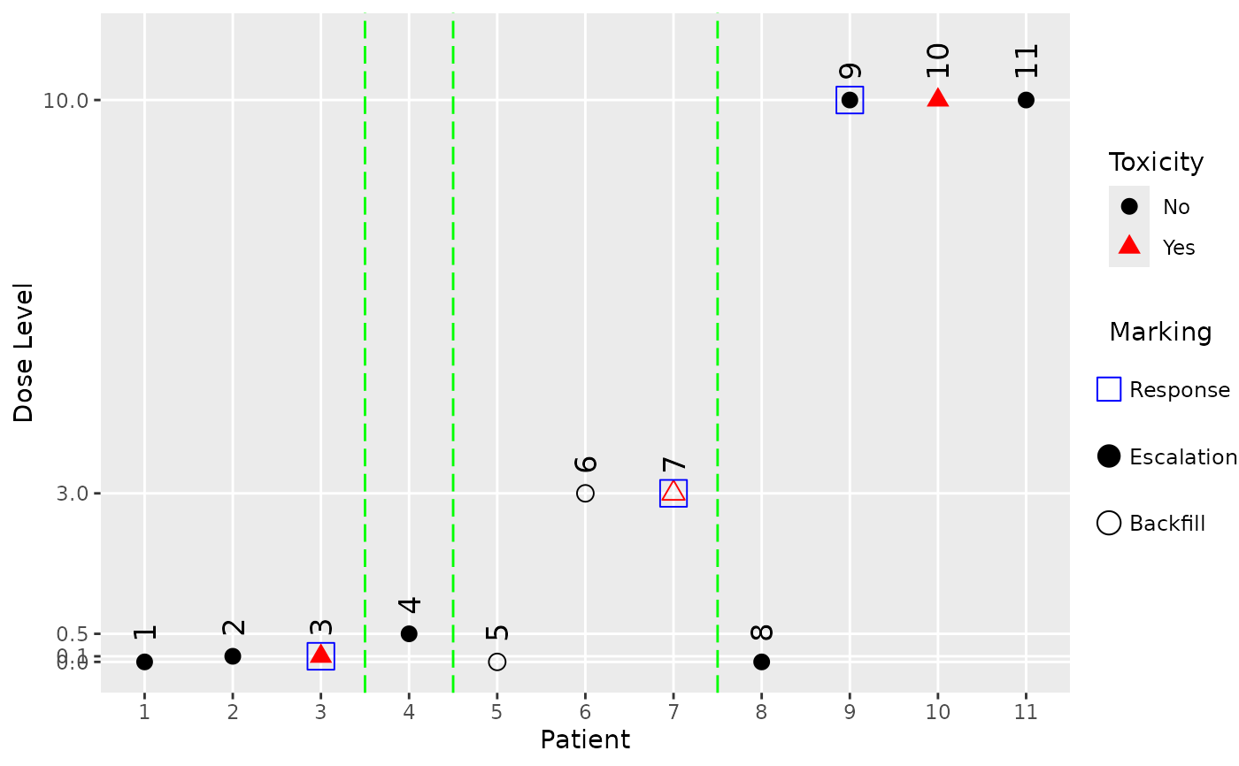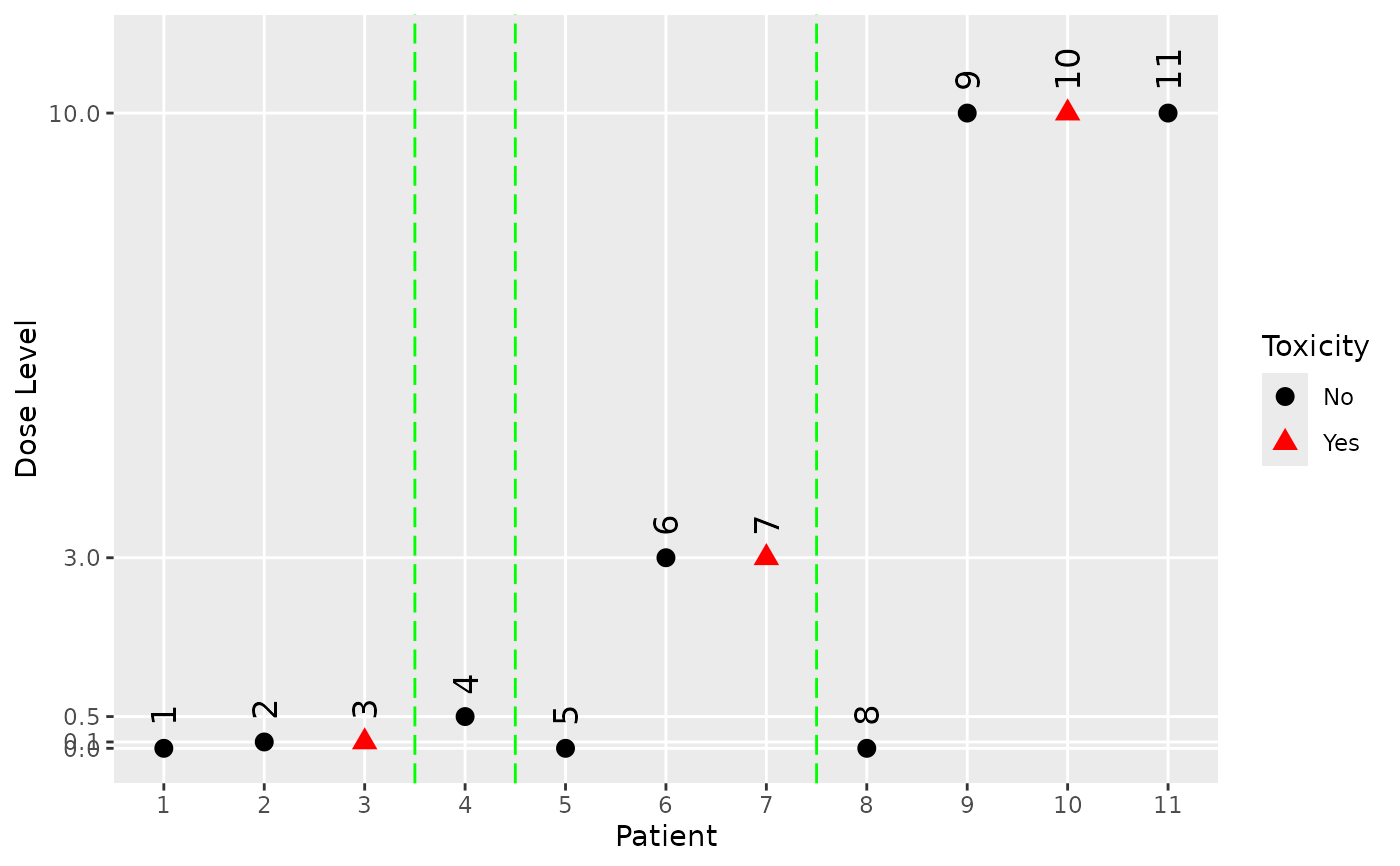 yCategories = c("No tox" = 0L, "Sub-tox AE" = 1L, "DLT" = 2L),