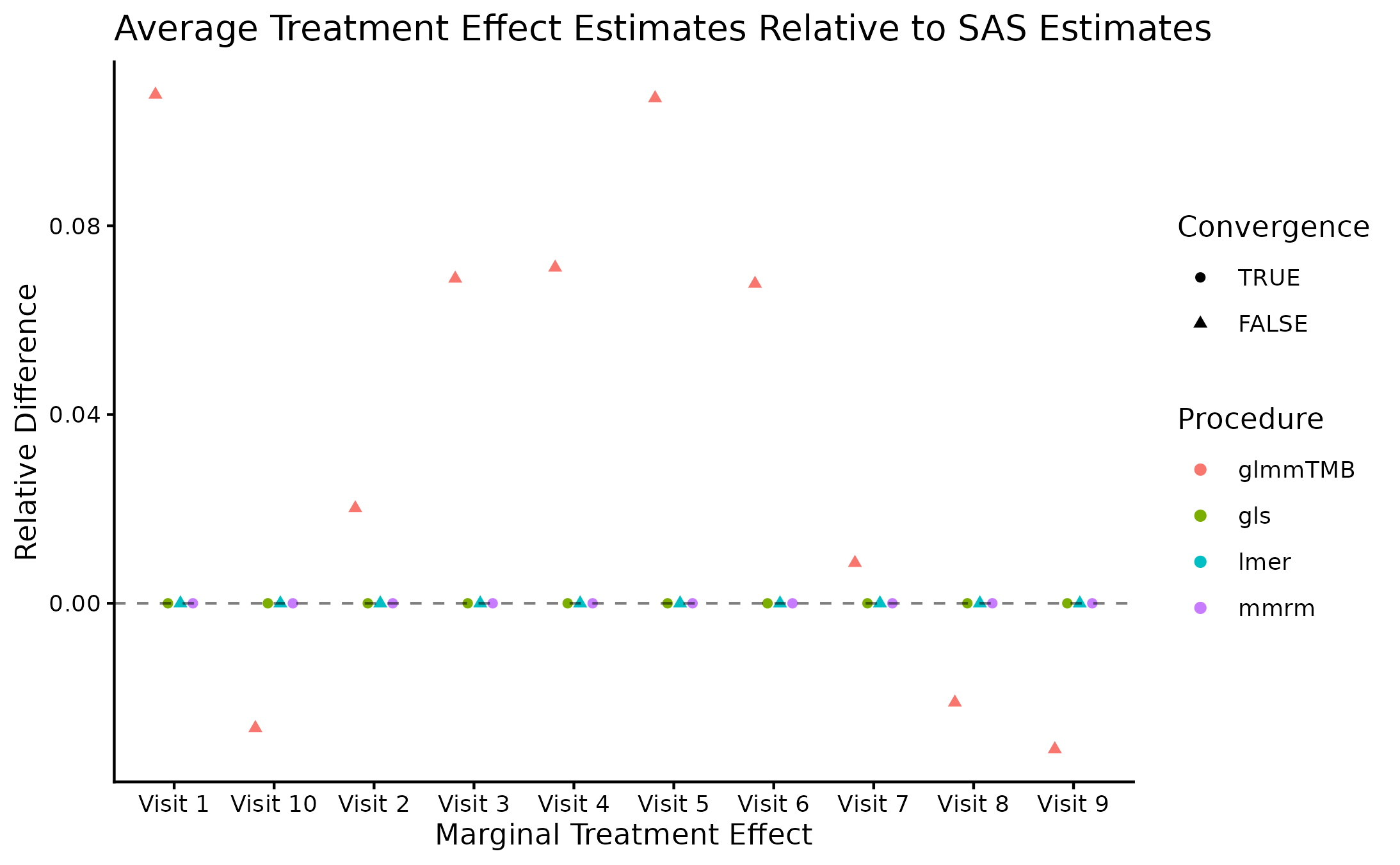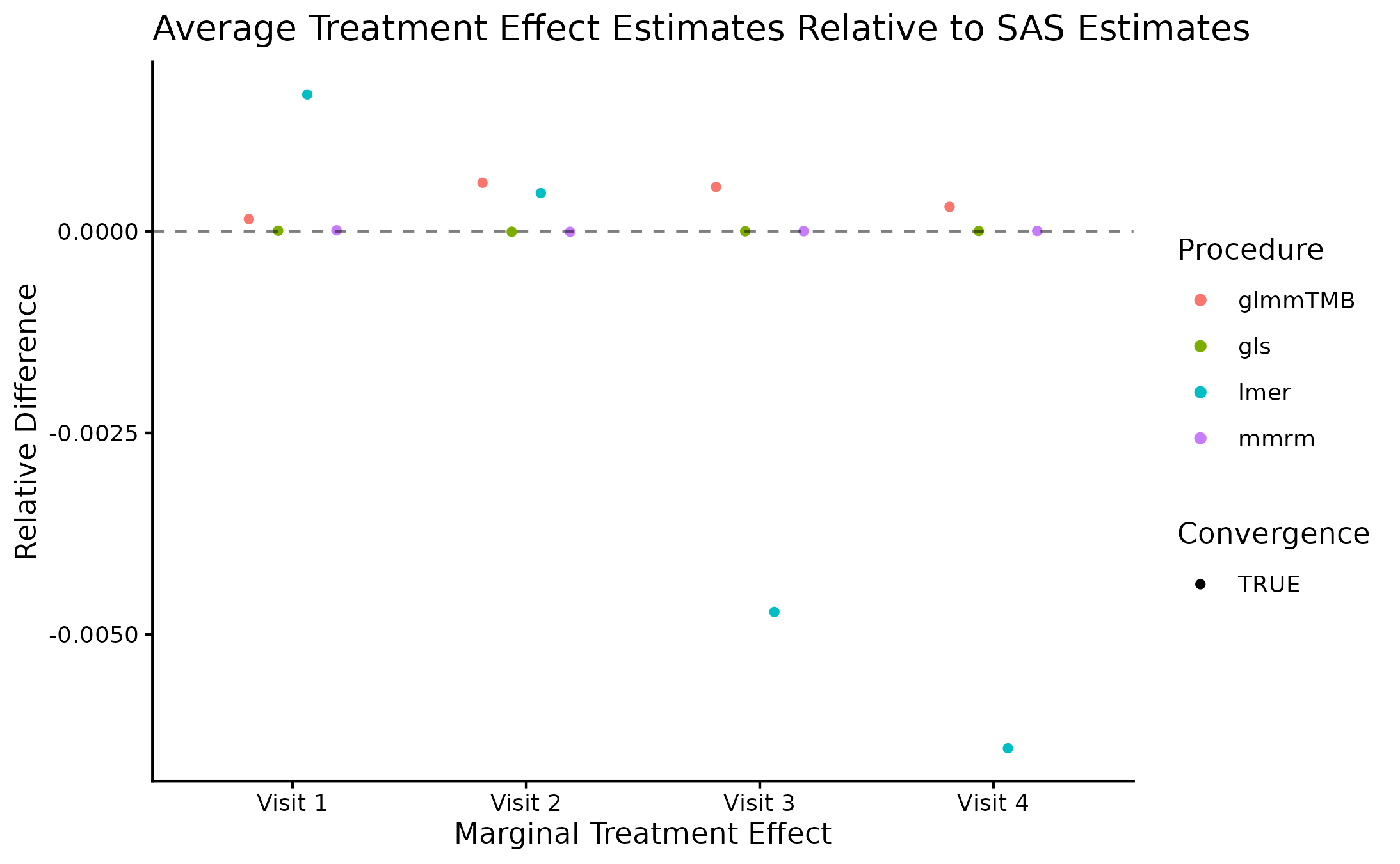 We again find that mmrm produces the fastest convergence
